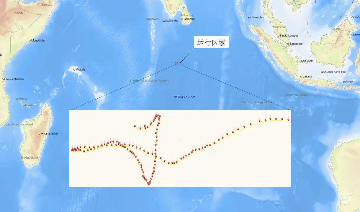 “FX-4000”观测轨迹据悉,“FX-4000”作为“全球变化与海气相互作用专项(二期)”西印度洋水体综合调查冬季航次布放的重要国产海洋调查仪器设备,由国家海洋标准计量中心作为第三方测试单位,依托自然资源部第一海洋研究所科考队员,于2021年11月搭载“向阳红01”号科考船科考航次在南印度洋顺利完成布放。平台布放地理位置为(78.6674216°E,3.0118470°S),运行期间东西跨度为76.9海里(142.4公里),南北跨度为24.4海里(45.18公里)。