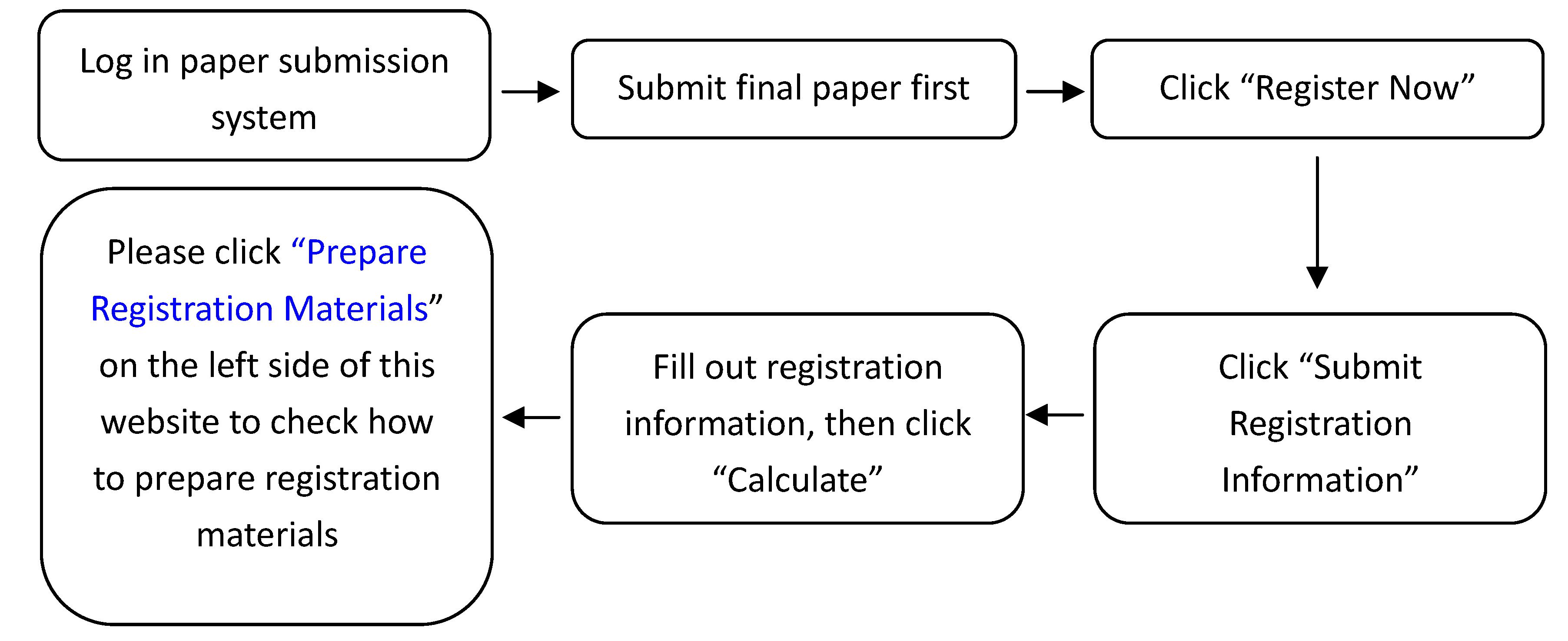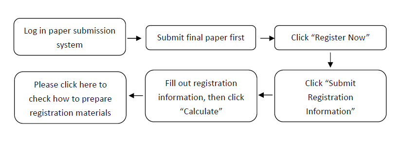 IF you have submitted a paper and would like to register the paper, please follow the steps: Login Paper Submission System and submit your final paper, after you received the acceptance notification letter. Then you can process the registration procedure, please click "Prepare Registration Materials" listed on the left side of this website for detail.
