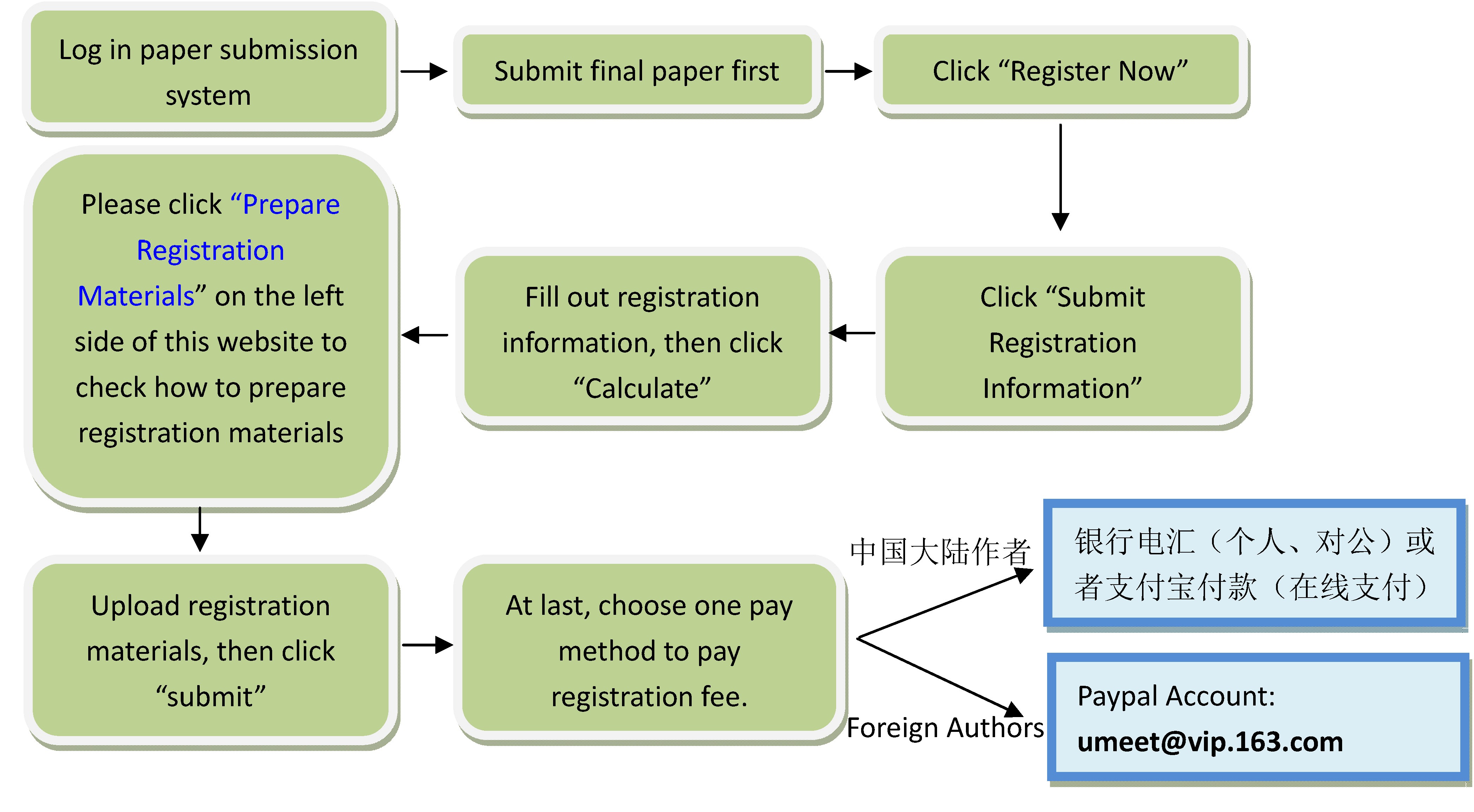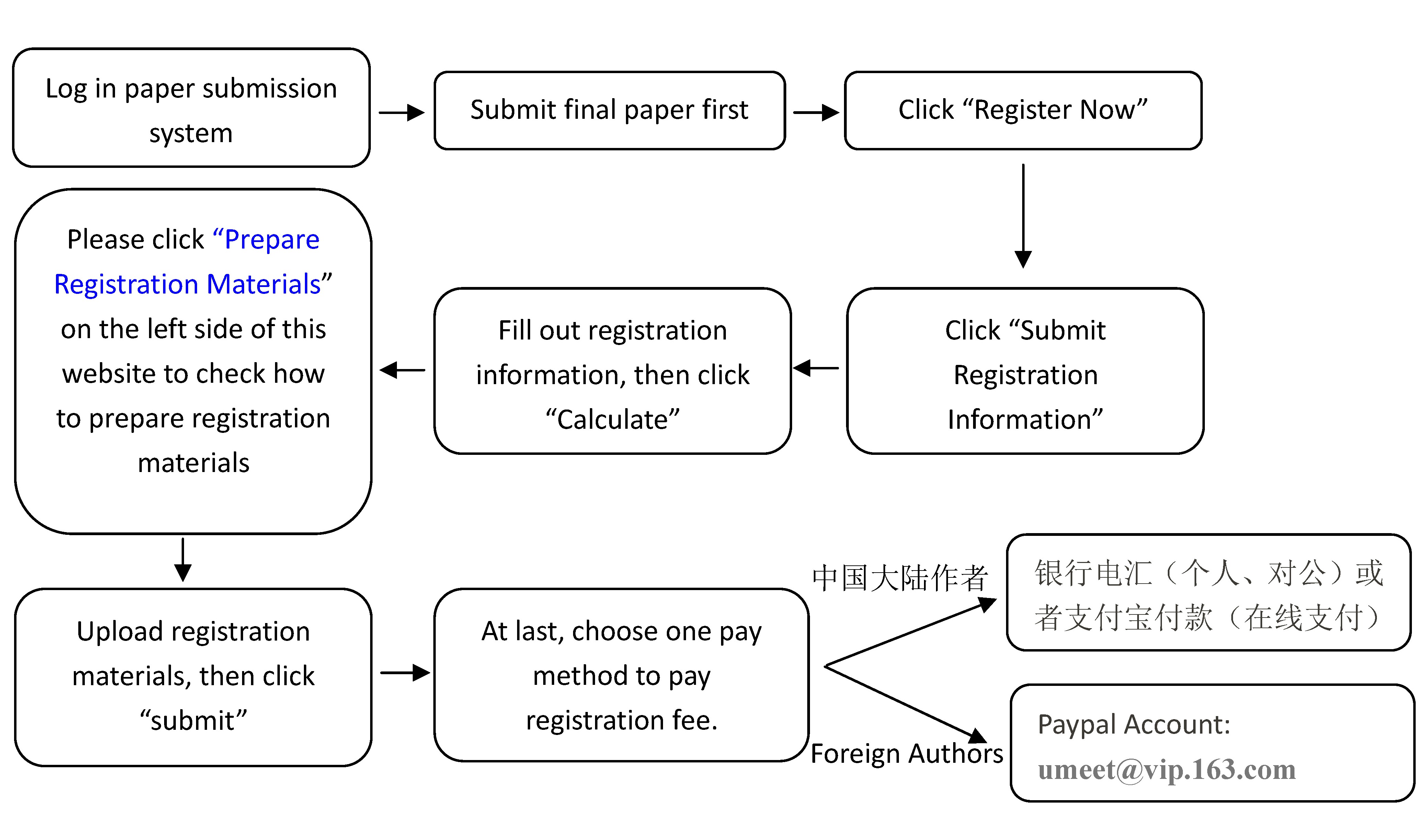 For author from foreign countries, please choose paypal to pay your registration fee, the account is umeet@vip.163.com